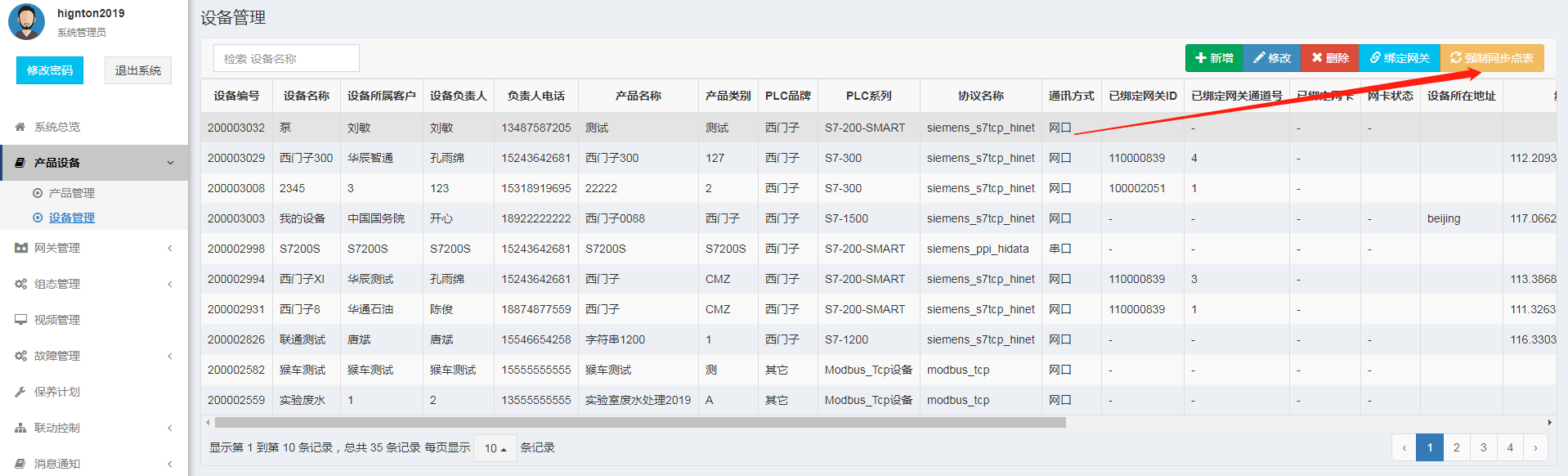 1. 是否強(qiáng)制同步點(diǎn)表,以思普云平臺(tái)采集數(shù)據(jù)為例,思普云平臺(tái)的設(shè)備管理處,選擇設(shè)備點(diǎn)擊【強(qiáng)制同步點(diǎn)表】。